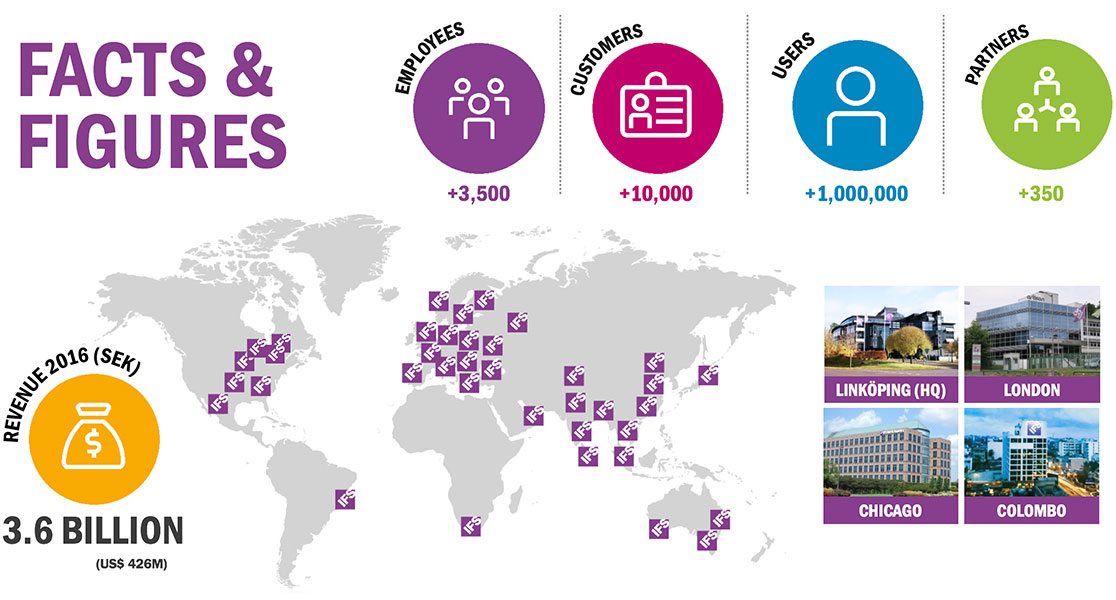 شرکت IFS یکی از 10 نرم افزار برتر دنیا می باشد که راهکارهایی مانند برنامه ریزی منابع سازمانی (ERP) و مدیریت دارایی های فیزیکی (EAM) و مدیریت پروژه سازمان های بزرگ (EPM) را به بازار عرضه کرده است. این شرکت با در اختیار داشتن سهم قابل توجهی از بازار نرم افزار دنیا و همچنین سرمایه گزاری 10 درصد از درآمد سالیانه خود بر روی فعالیت های تحقیق و توسعه ای، مطابق تحلیل ها نقش "رهبر" را در زمینه نرم افزارهای برنامه ریزی منابع سازمانی ایفا می کند. دفتر مرکزی این شرکت بین المللی در کشور سوئد می باشد.